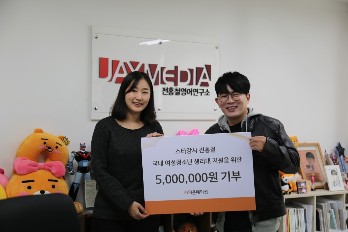 [보도자료] 인기강사 전홍철, 국내 저소득 여성청소년 위해 500만원 기부