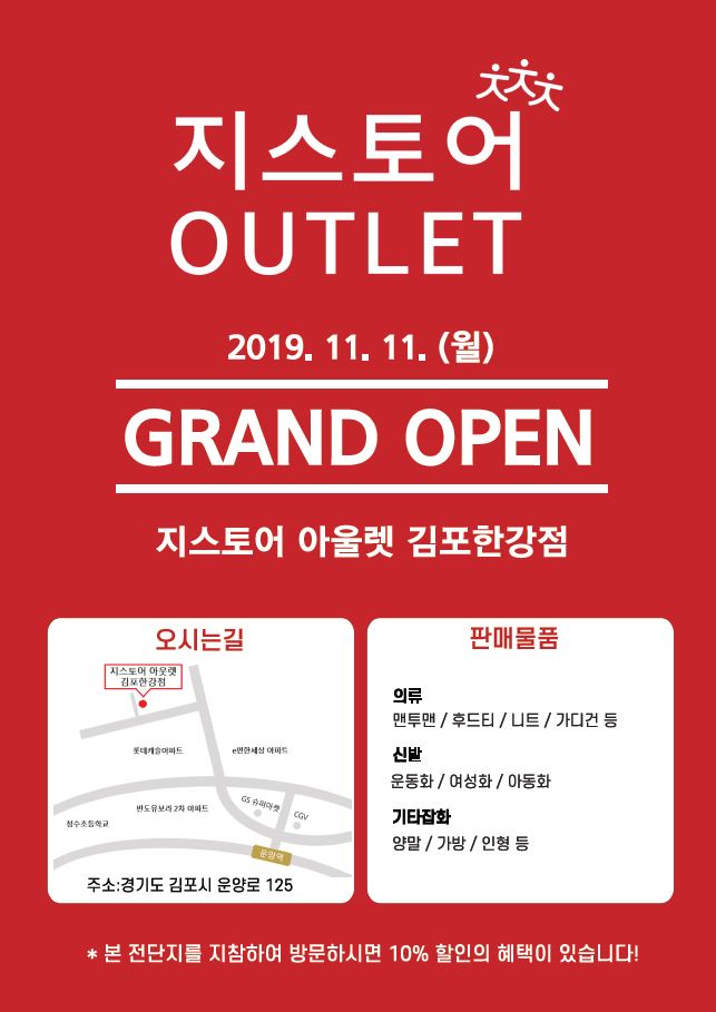 사회적 경제 사업의 일환으로 11월 11일에는 지스토어 아울렛 김포한강점을 오픈할 예정입니다.