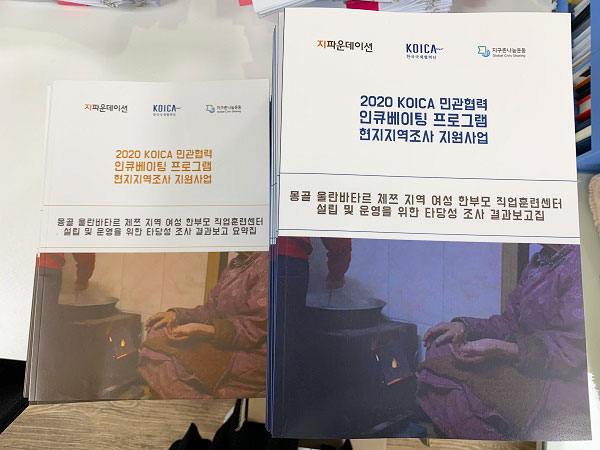 우리나라 정부의 몽골 국가협력전략(CPS), 몽골 정부의 개발전략, 몽골의 교육 및 직업교육 현황, 노동시장 현황, 사회복지제도, 직업훈련분야 ODA 사업 보고서를 통해 어느 정도 몽골의 현황에 대한 큰 그림을 그릴 수 있었고, 현지 조사원분들을 통해 국내에서는 찾을 수 없던 체쯔 지역의 세부 통계자료를 수집하여 여성 한부모라는 타겟에 대해 더 자세히 알아갈 수 있었습니다.