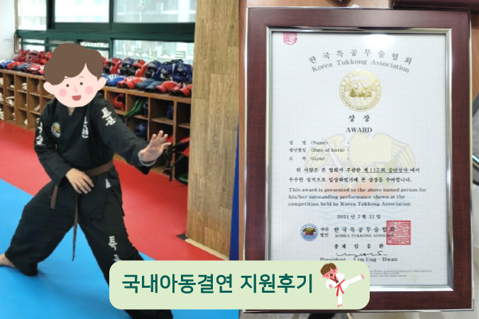 특공무술 학원에서 열심히 배운 결과 단증을 취득한 대현이