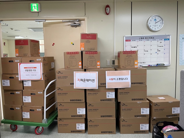 며칠 후 지파운데이션으로 도착한 전자레인지 22대와 밥솥 5구.