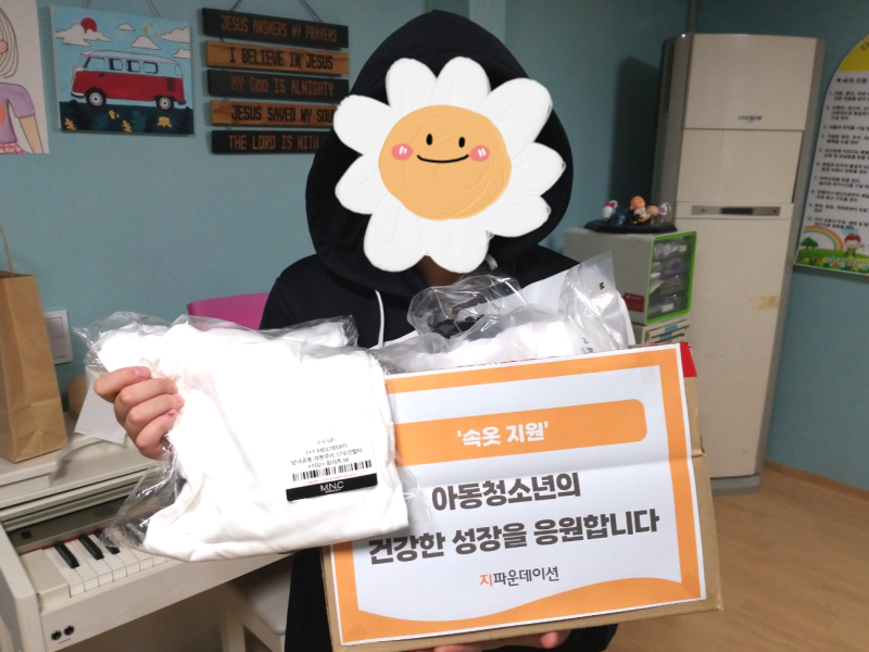 “속옷이 많지 않아 같은 속옷을 여러 번 입어냄새가 날까 늘 신경이 쓰였는데 이제 안심이에요.이 선물을 받고 정말 행복합니다. 감사합니다. 건강하세요!"- 아동 B -