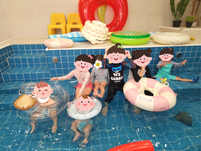 키즈풀 안에는 다양한 장난감들이 있어서, 물놀이뿐만 아니라