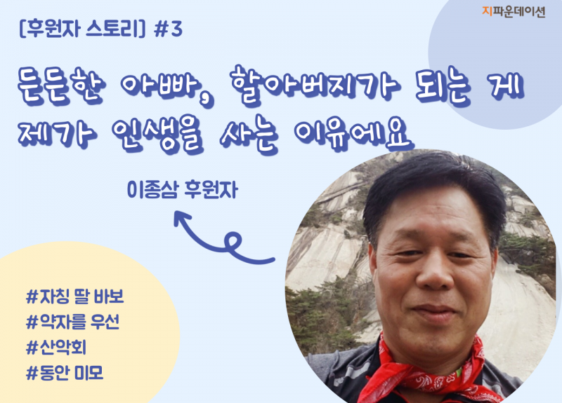 "그저 아이들이 언제든 믿고 기댈 수 있는든든한 아빠, 할아버지가 되는 게제가 인생을 살아가는 이유에요.정말 그거 하나면 전 다 좋습니다."-이종삼 후원자-