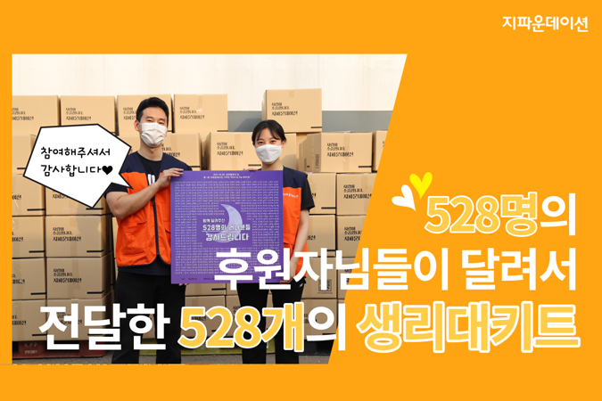 동참해주신 기업들과 후원자분들의 마음을 담아 528개의 생리대 키트를