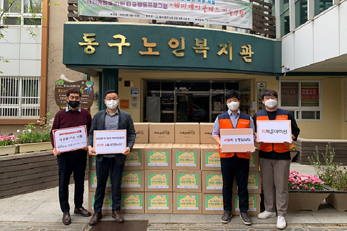 지파운데이션과 동구노인복지관이 네 차례에 걸쳐 식료품 키트와