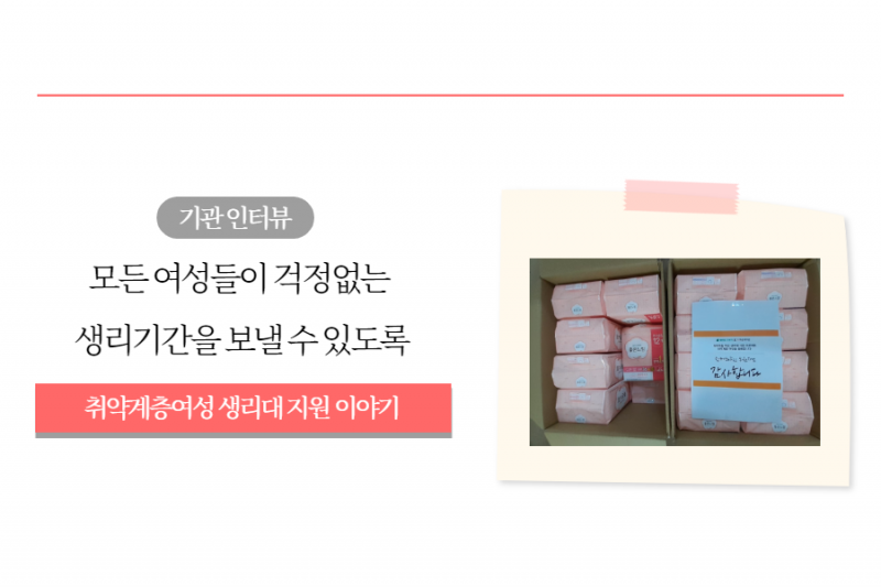 저소득 여성 청소년 뿐만 아니라 생리기간에 어려움을 겪고 있는 취약계층 여성들에게도 생리대를 지원하였습니다.