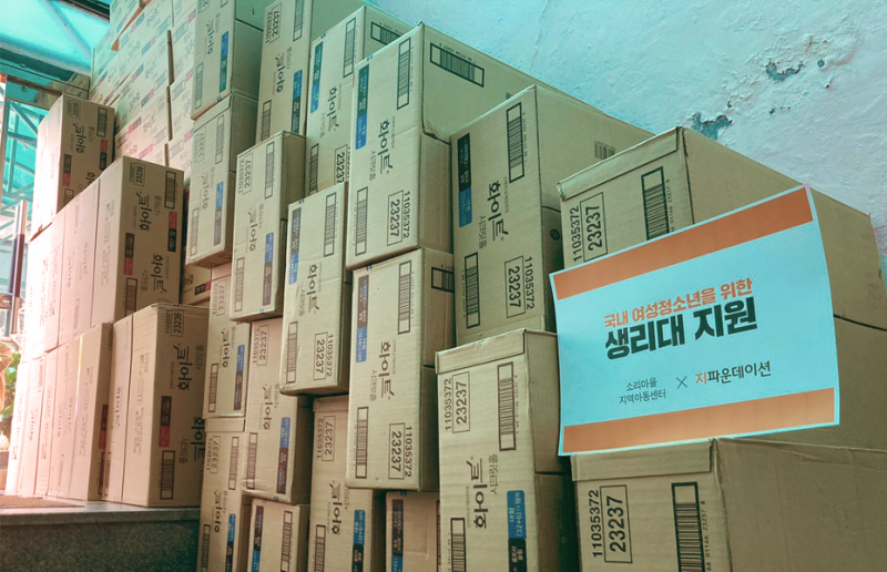 상처받지 않도록 꾸준히생리대 지원사업을진행하고 있습니다.