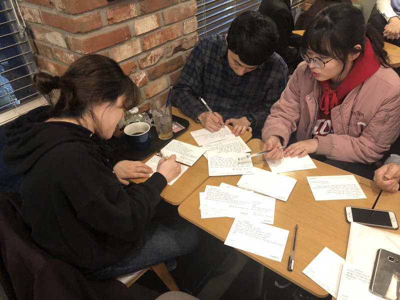 - 이사라 후원자님의 손편지 작성 봉사활동 사진 -