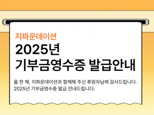 지파운데이션 뉴스레터 제공을 위한 개인정보 수집 및 이용 동의 1. 수집목적 : 지파운데이션 소식 및 후원관련 소식 제공 2. 수집항목 : 성명, 이메일주소 3. 보유기간 : 수신거부시 지체 없이 파기 * 수집을 거부하실 수 있으며, 거부시 뉴스레터 소식이 제공되지 않습니다.