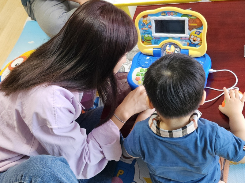 고사리 손으로 열심히 그림을 그리는 아동의 모습이 매우 귀엽습니다:)