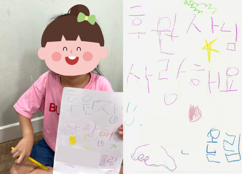 후원자님의 편지를 받고 감사의 마음을 그림 편지로 표현한 민수,