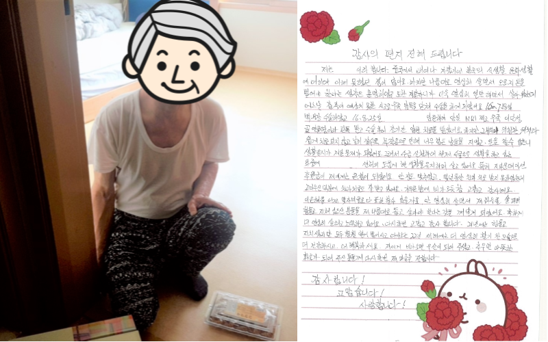 "늙고 아픈 저를 누군가 생각해주고 있다는 게 너무 고맙고 행복합니다."