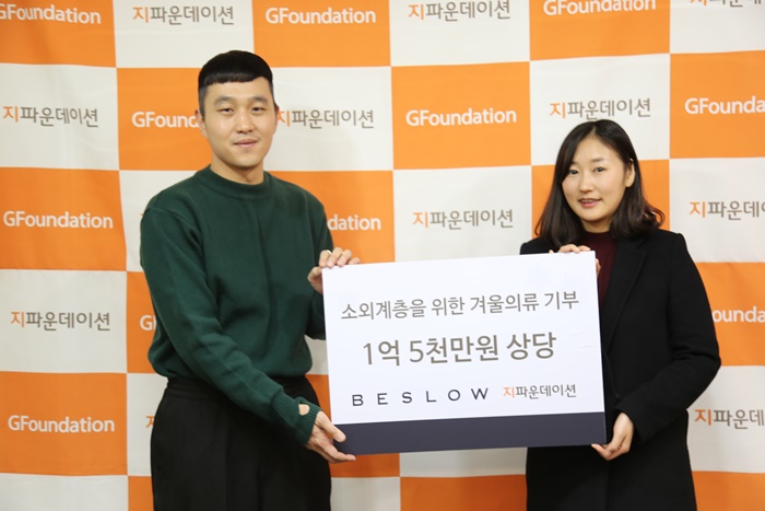 지난 여름 지파운데이션에 2억원 상당의 의류를 기부해준 비슬로우에서는