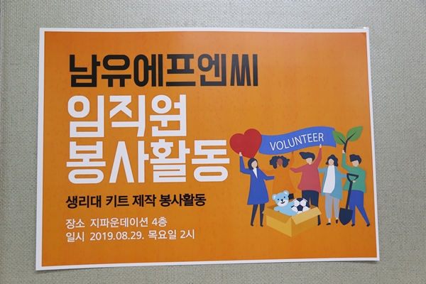 남유에프엔씨 임직원들과 함께한 생리대 키트 제작 봉사활동
