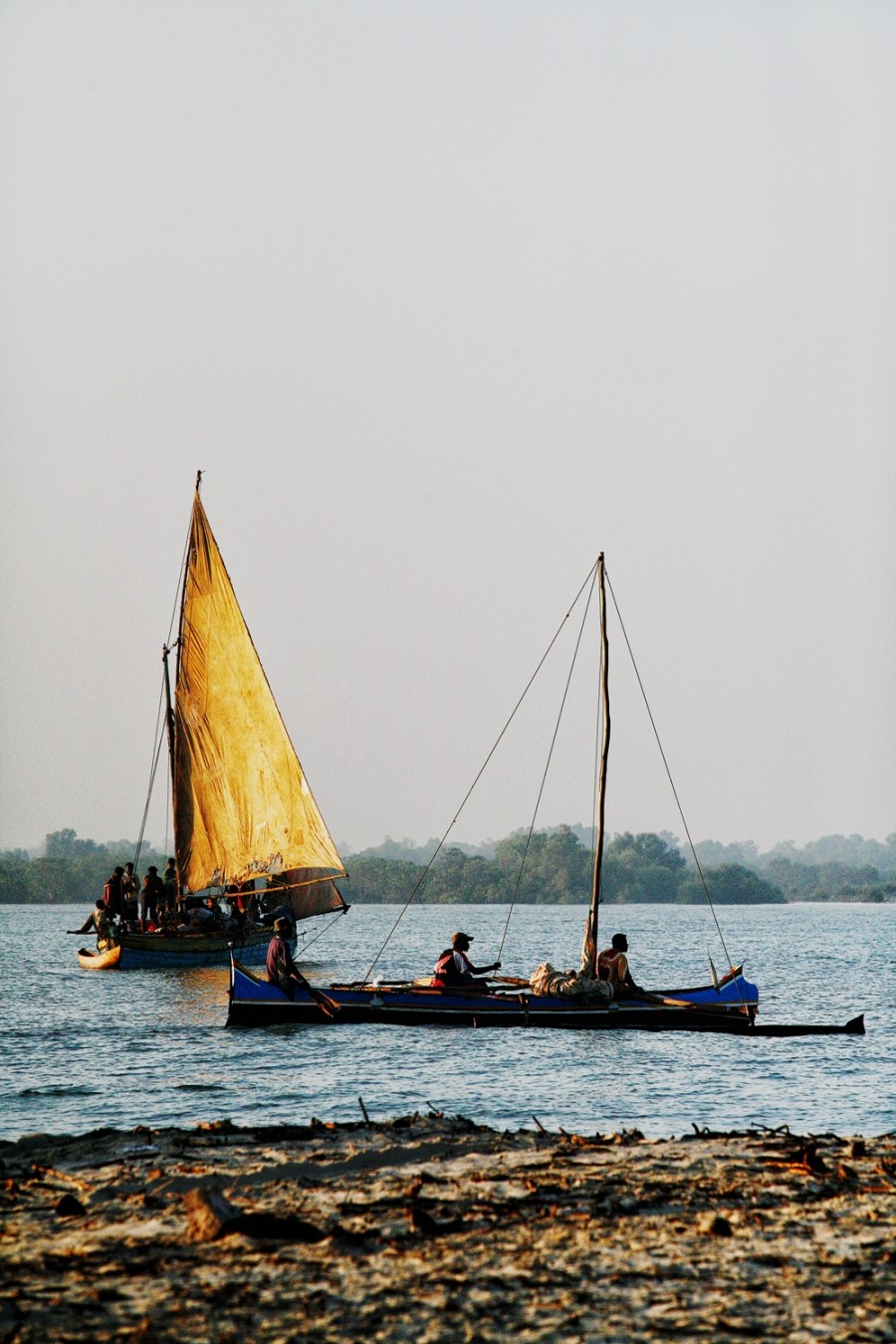 이른 새벽 바다로 향하는 마다가스카르 사람들.
