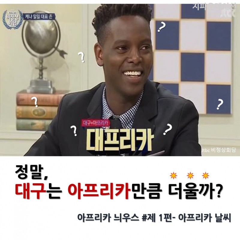 아프리카뉴스 | [카드뉴스] 정말 대구는 아프리카 만큼 더울까? 페이지 정보 작성자 G파운데이션 작성일17-06-28 10:01 조회16,124회 댓글0건 이전글 다음글 목록 본문 댓글목록 등록된 댓글이 없습니다. 이전글 다음글 목록