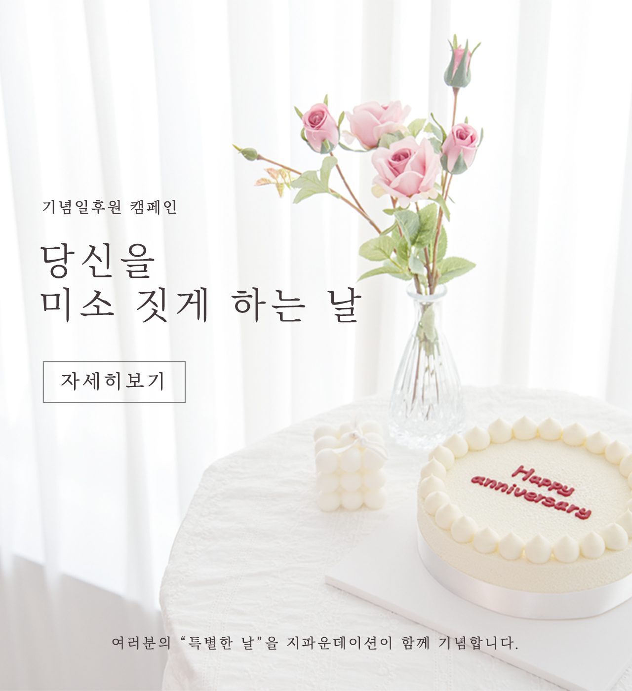 지파운데이션 뉴스레터 제공을 위한 개인정보 수집 및 이용 동의 1. 수집목적 : 지파운데이션 소식 및 후원관련 소식 제공 2. 수집항목 : 성명, 이메일주소 3. 보유기간 : 수신거부시 지체 없이 파기 * 수집을 거부하실 수 있으며, 거부시 뉴스레터 소식이 제공되지 않습니다.